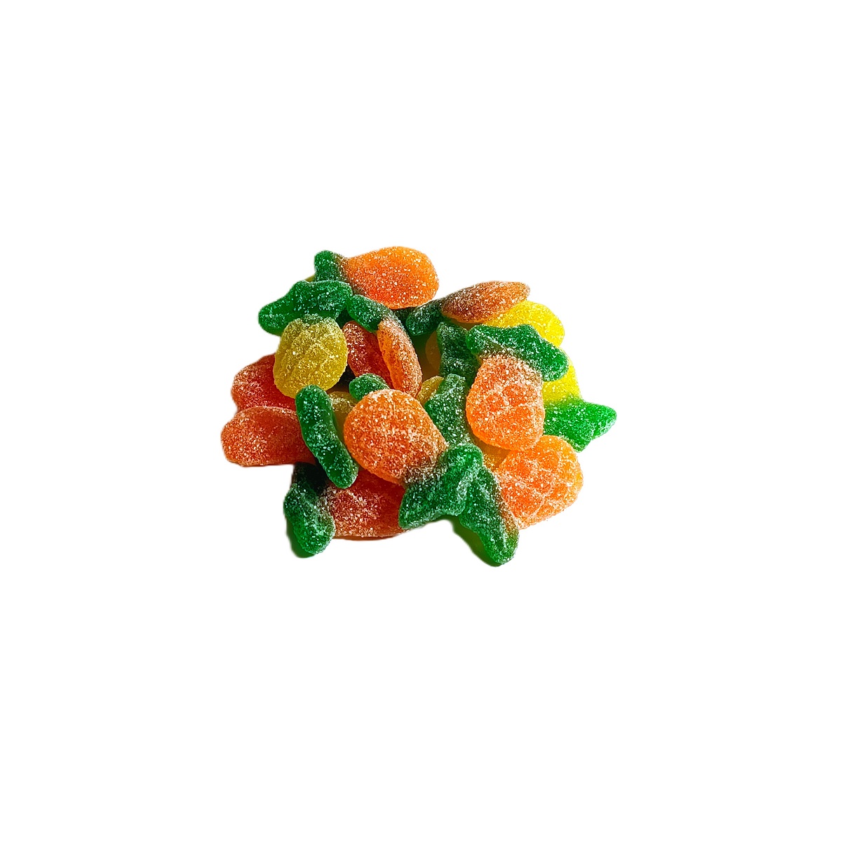 Bonbon gélifié et sablé en forme d’ananas, saveur légèrement sure.