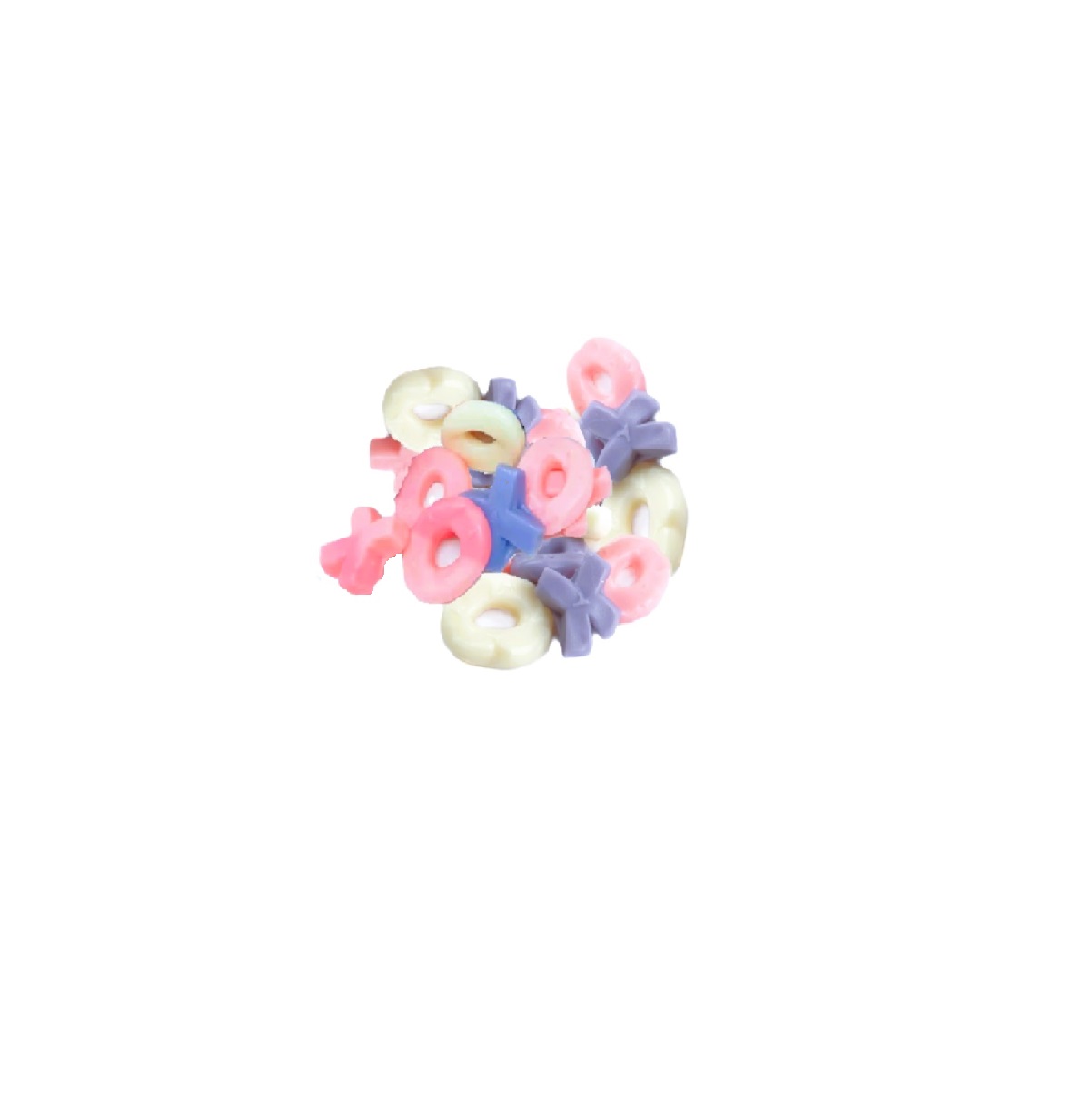 Pastilles de chocolat au lait recouvertes de perles en bonbon.