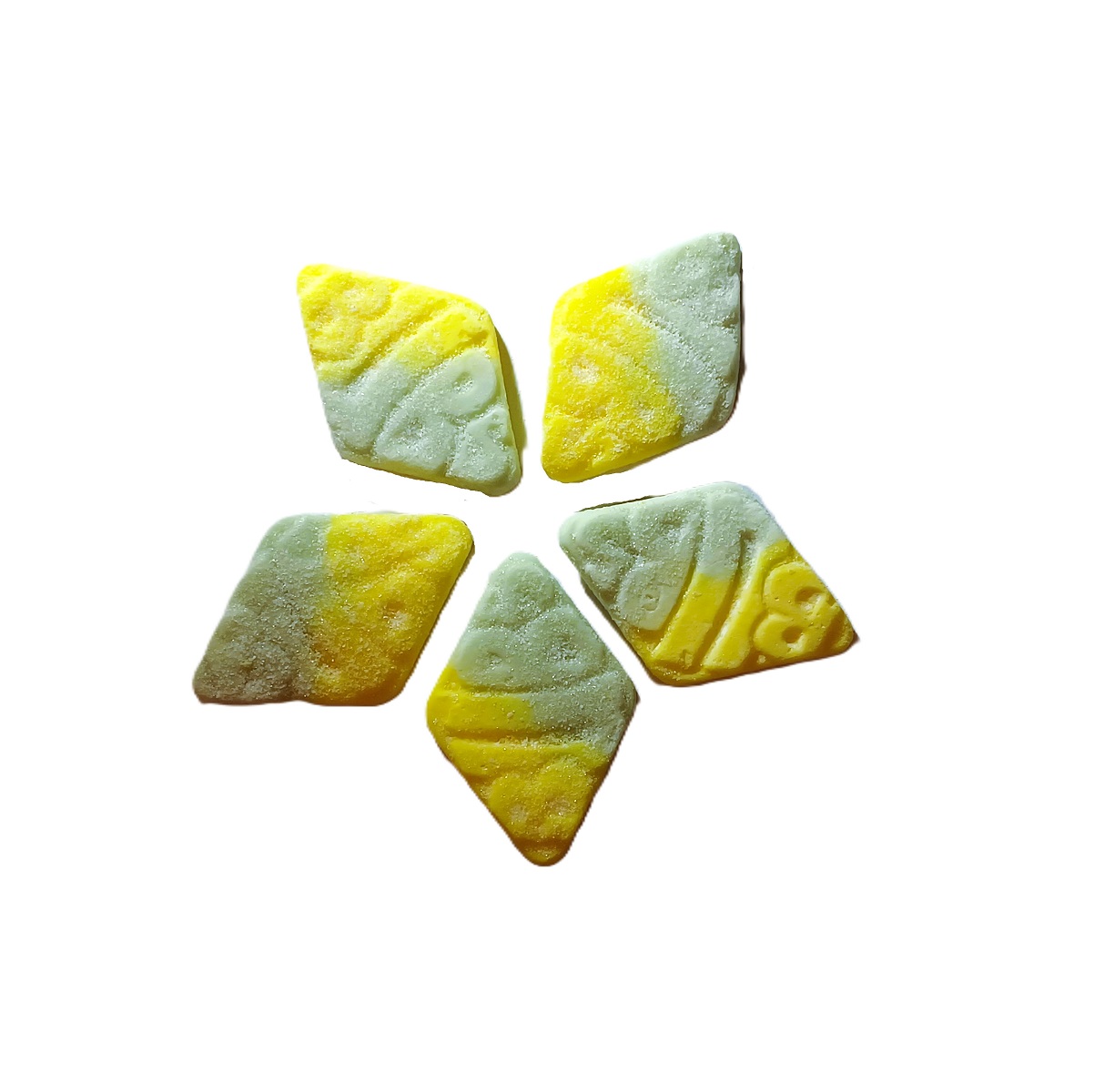Losange à saveur de fruits surs. Chaque bonbon mesure environ 5,5cm (env.2 po) de long.