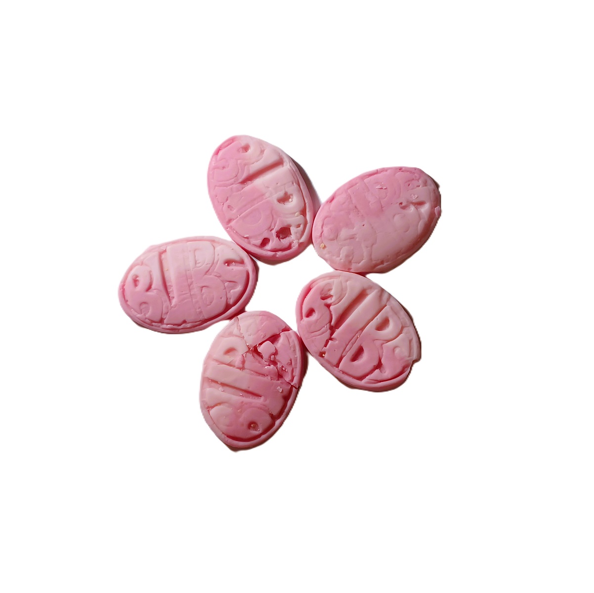 Gros ovale à saveur de fraises sauvage et de pomme grenade. Chaque bonbon mesure environ 5,5cm (env.2 po) de long.