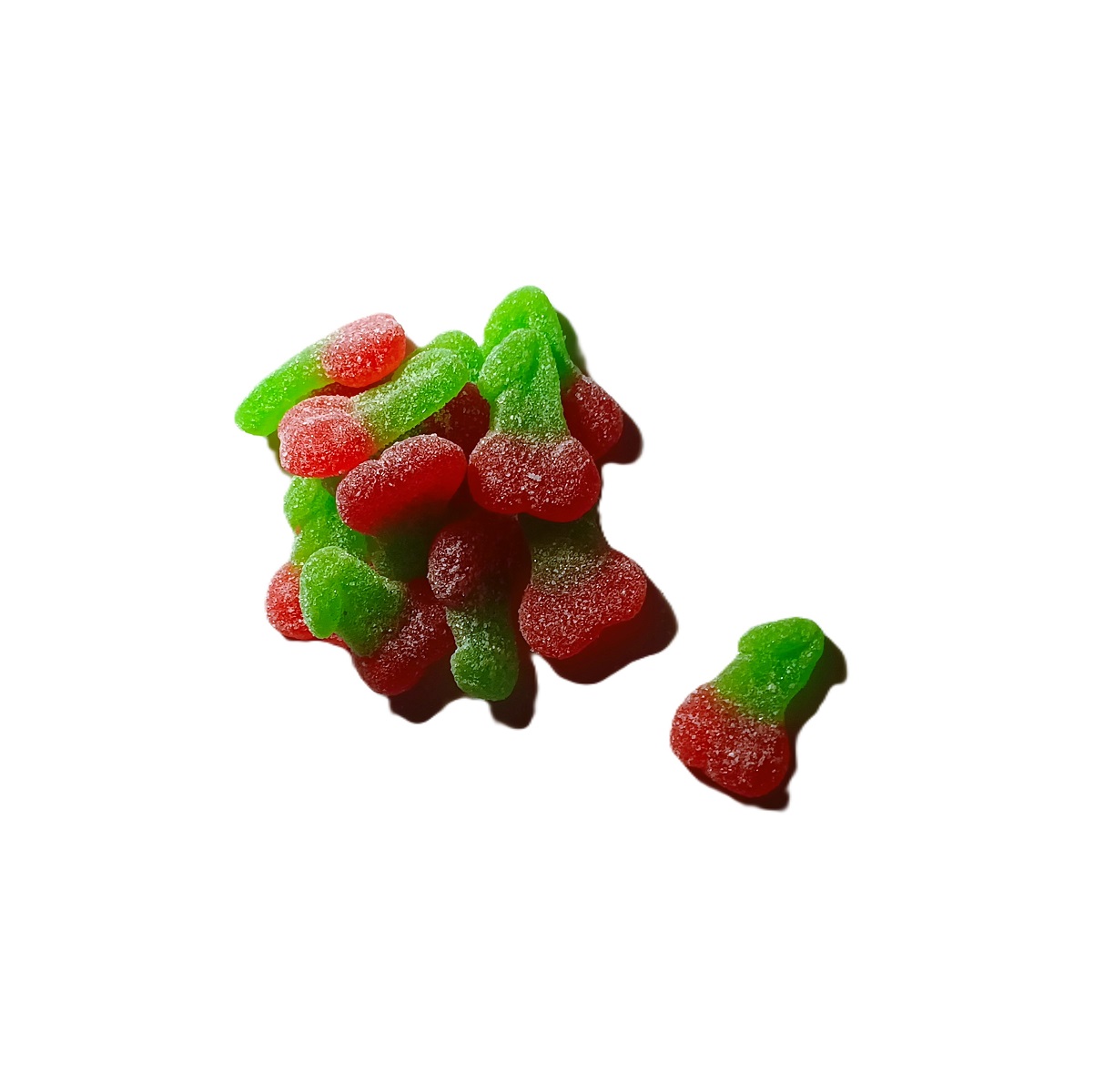 Bouteille gélifiées à saveur de gomme à bulles surette.