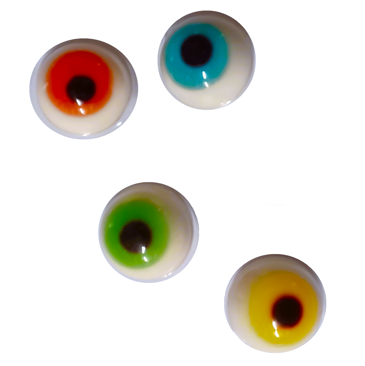 Bonbon gélifié en forme d’oeil, avec un centre liquide aux fraises.